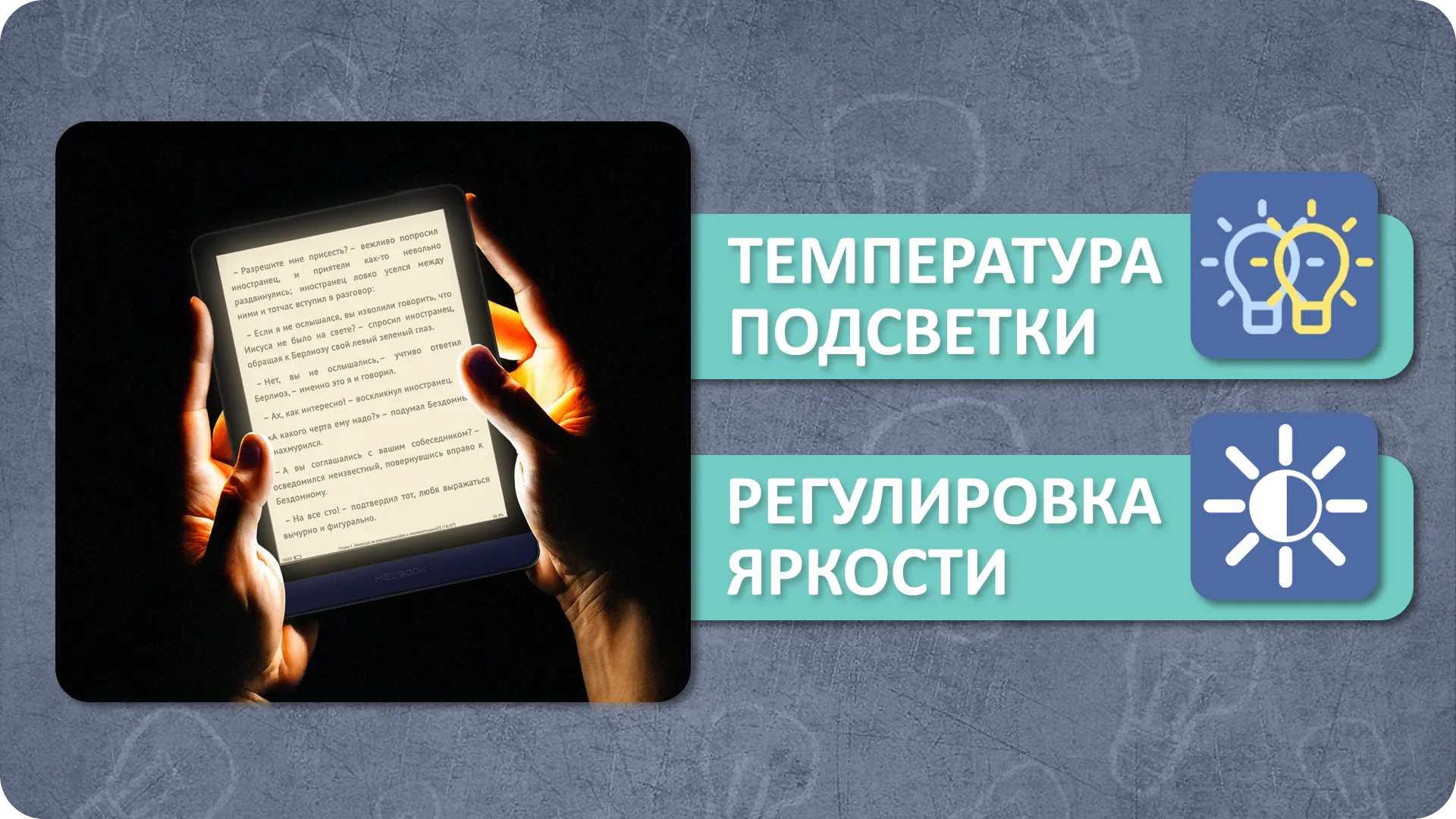 M6 оснащена подсветкой, что делает её идеальной для чтения в темноте. Вы можете настроить яркость подсветки в соответствии с вашими предпочтениями, а также выбрать оптимальную температуру свечения — от холодного до теплого. Кроме того, есть возможность активировать темный режим, в котором белый текст будет хорошо виден на черном фоне.