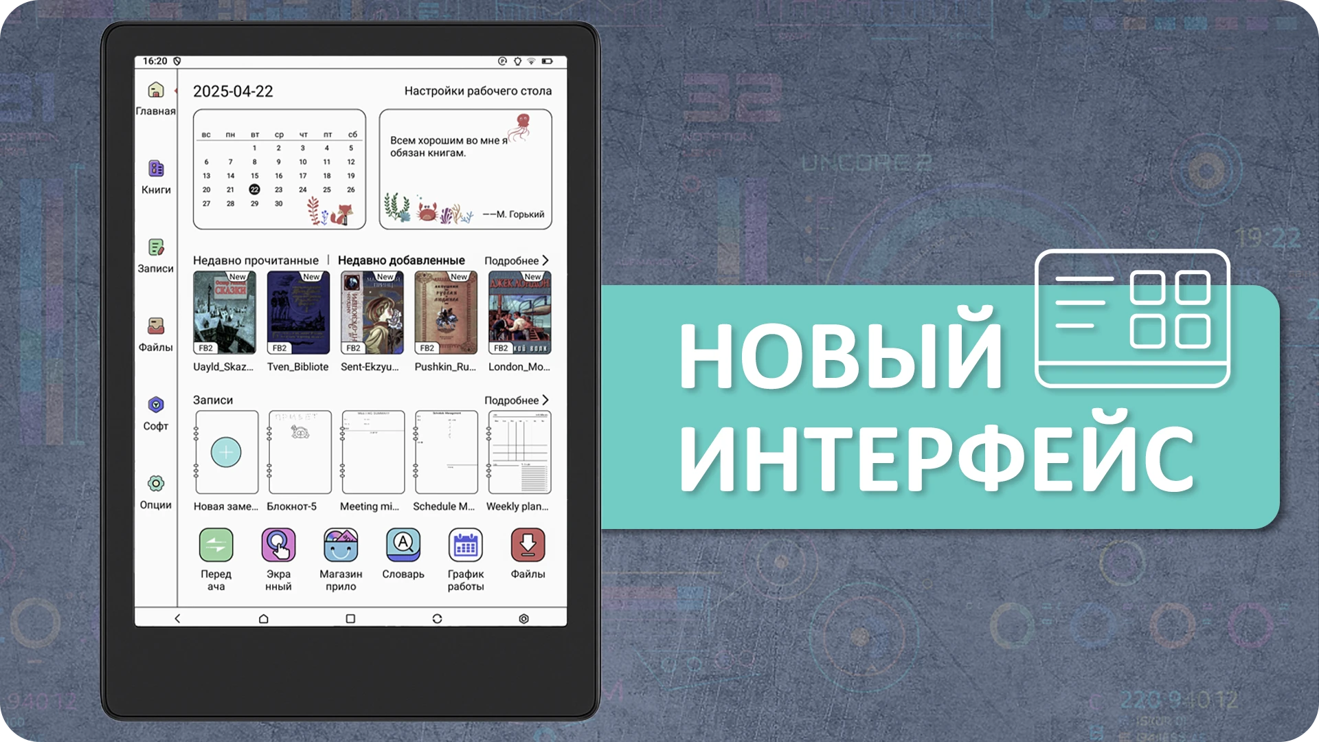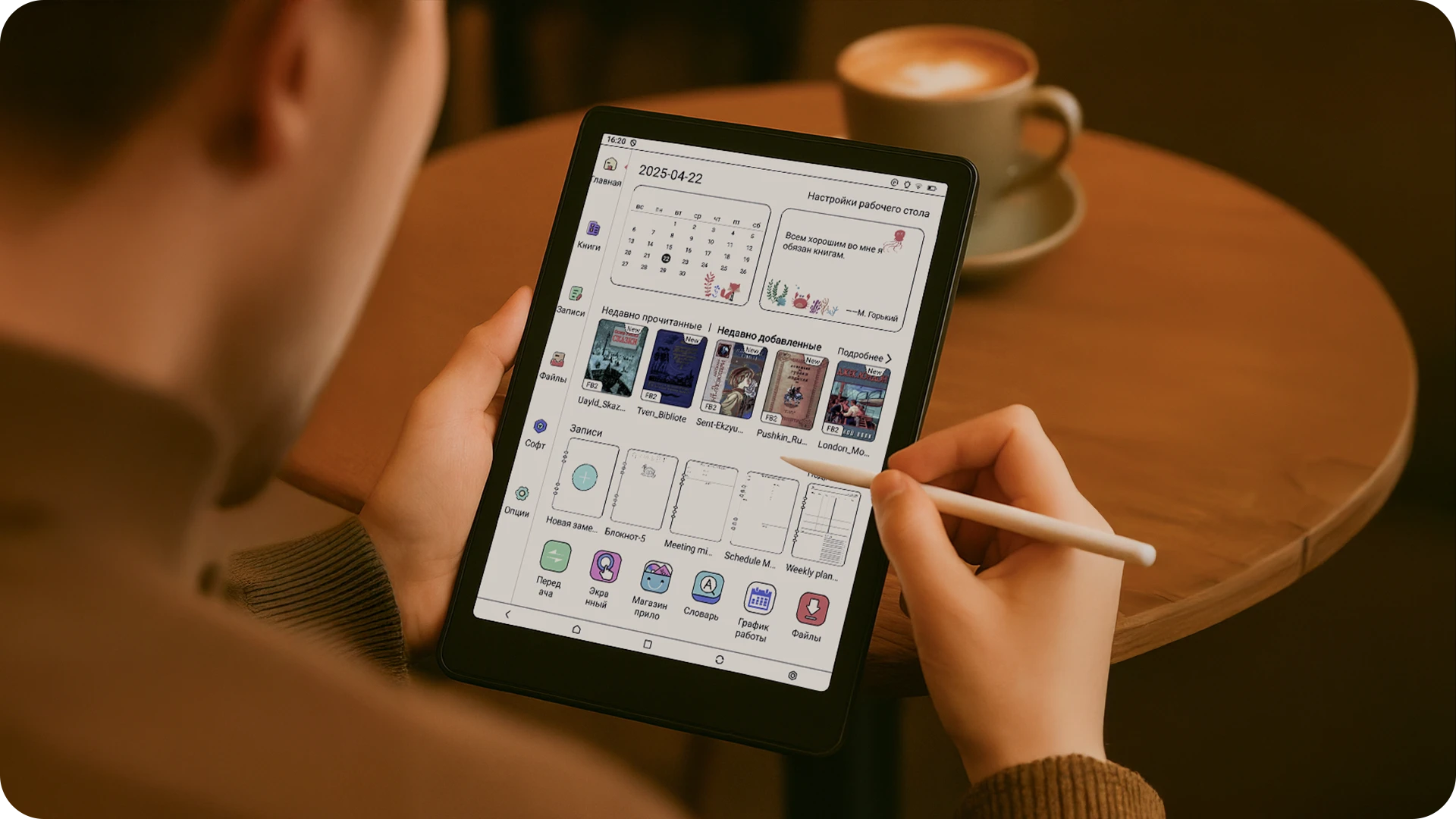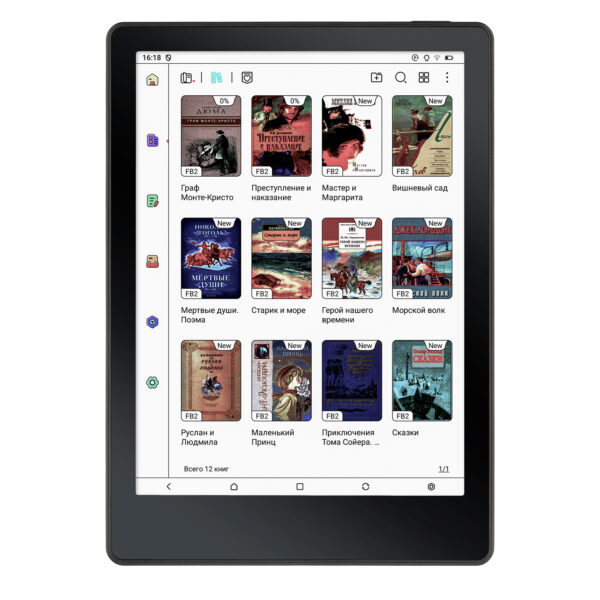 Электронная книга работает на Android, что позволяет устанавливать любые совместимые приложения — от читалок до онлайн-сервисов. Поддерживаются ЛитРес, Яндекс Книги, MyBook и другие книжные магазины.