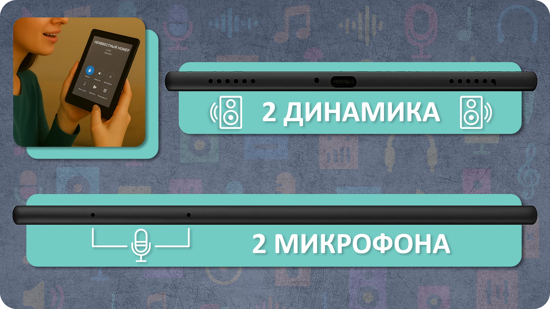 Электронная книга оснащена двумя динамиками и двумя микрофонами, что позволяет удобно слушать аудиокниги и музыку, записывать голосовые заметки и использовать устройство для звонков — без наушников и внешних аксессуаров.