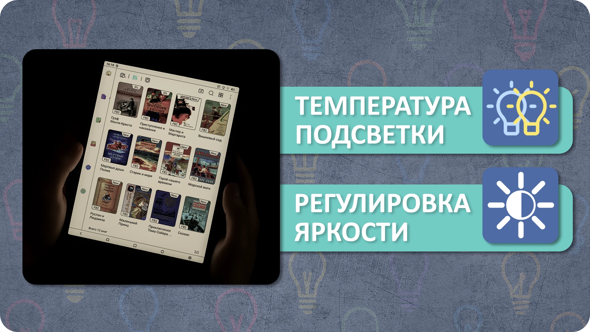 ⬤ РЕГУЛИРУЕМАЯ ПОДСВЕТКА ДЛЯ ЧТЕНИЯ В ТЕМНОТЕ
